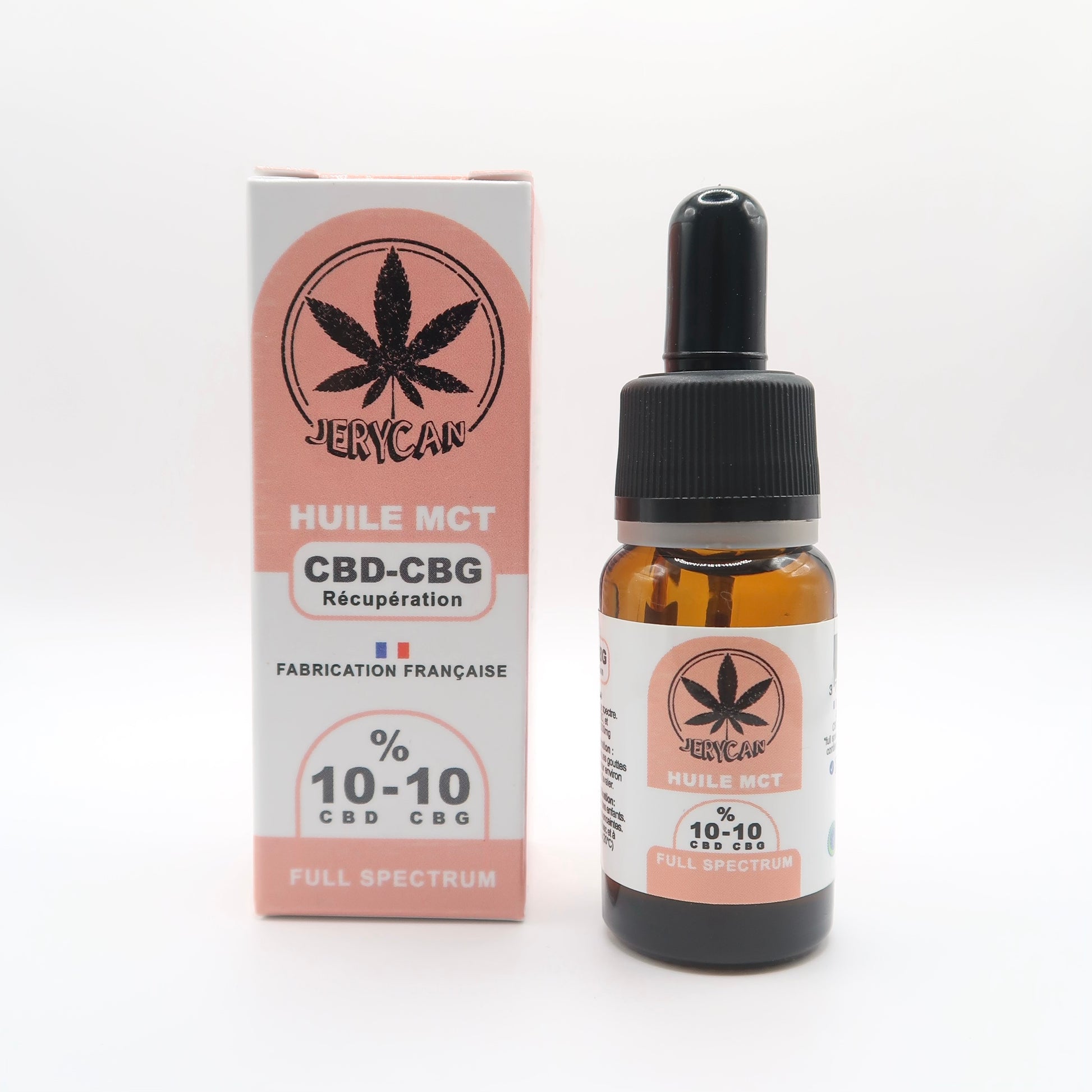 Huile MCT (Triglycérides à chaîne moyenne), extrait de Cannabis sativa L. (Full Spectrum), CBD : 10 % (1000 mg / 10 ml), CBG : 10 % (1000 mg / 10 ml). THC < 0,3 %. Sans arômes, sans additifs, sans solvants résiduels, sans OGM.