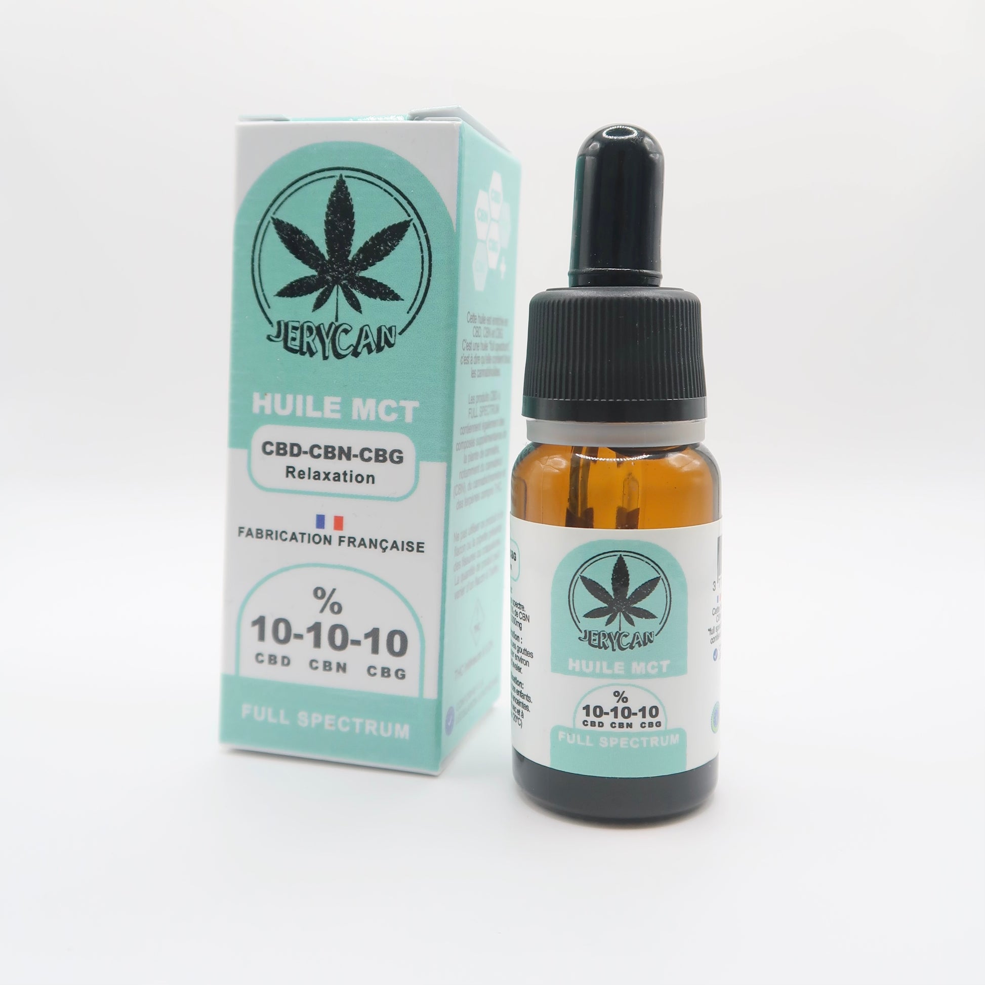 Huile MCT (Triglycérides à chaîne moyenne), extrait de Cannabis sativa L. (Full Spectrum), CBD : 10 % (1000 mg / 10 ml), CBG : 10 % (1000 mg / 10 ml), CBN : 10 % (1000 mg / 10 ml). THC < 0,3 %. Sans arômes, sans additifs, sans solvants résiduels, sans OGM.