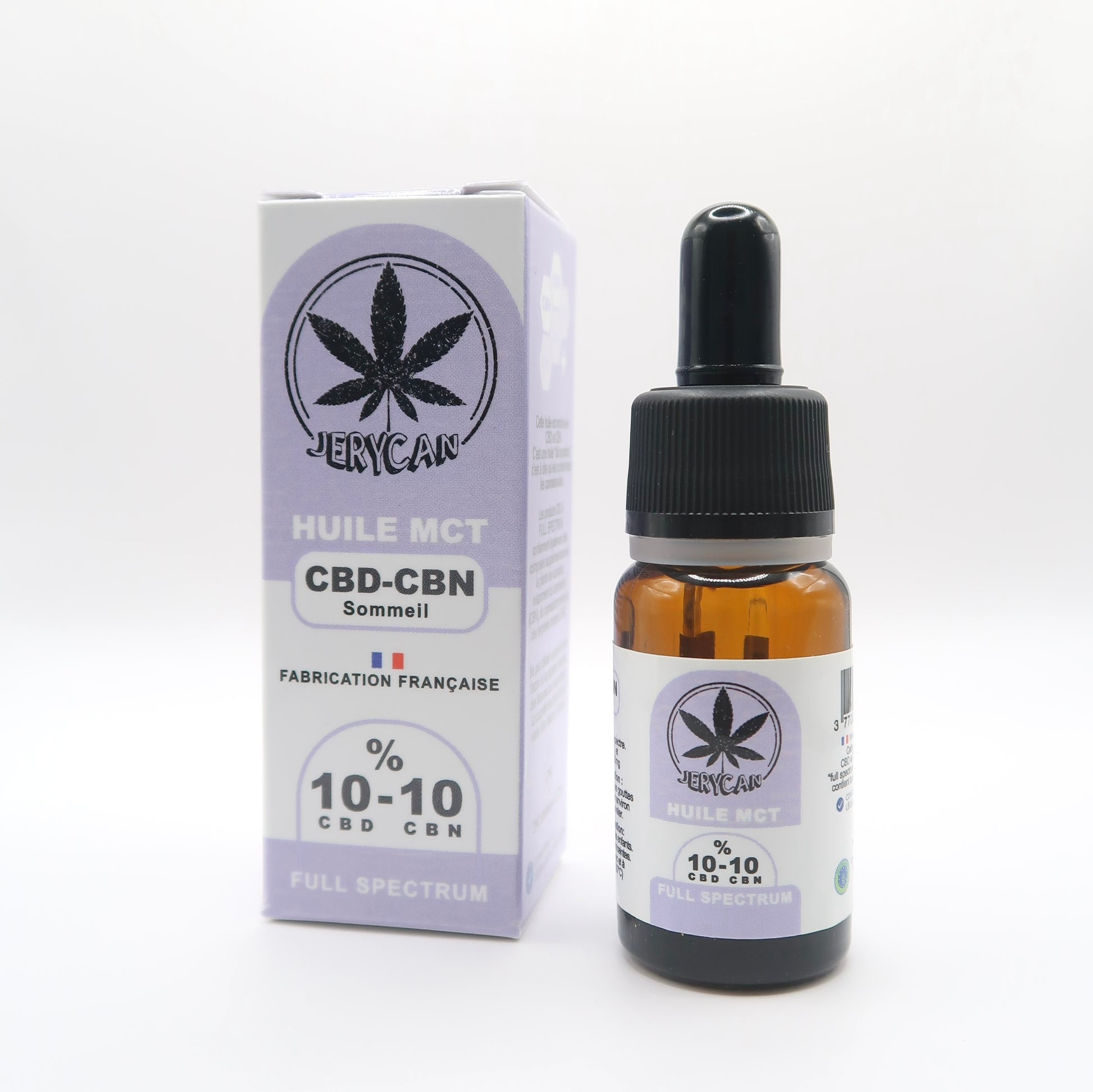 Huile MCT (Triglycérides à chaîne moyenne), extrait de Cannabis sativa L. (Full Spectrum), CBD : 10 % (1000 mg / 10 ml), CBN : 10 % (1000 mg / 10 ml). THC < 0,3 %. Sans arômes, sans additifs, sans solvants résiduels, sans OGM.